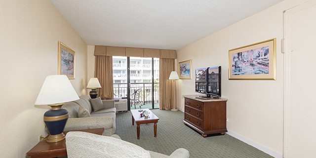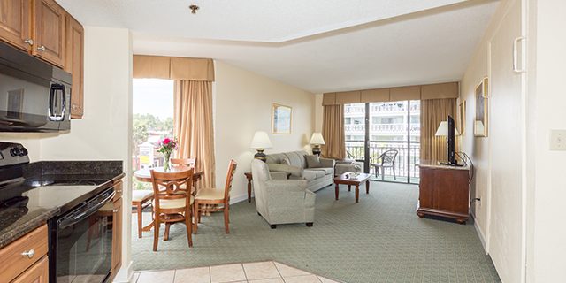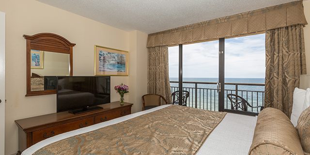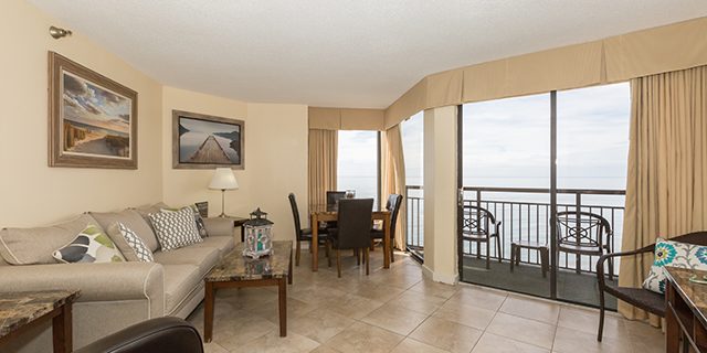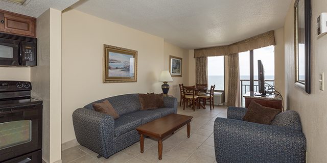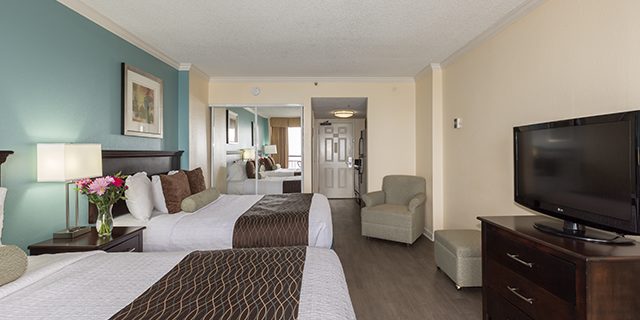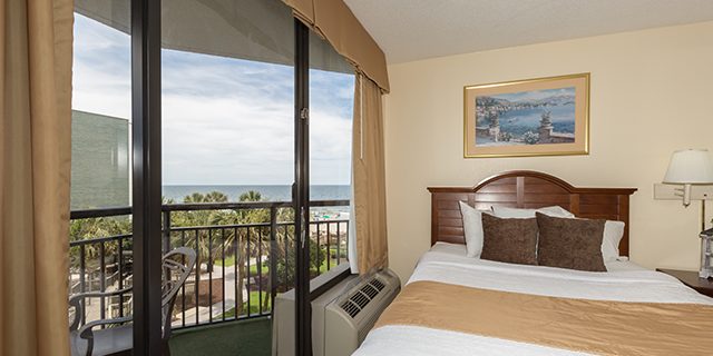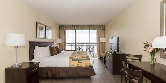 Let the fun begin at this family-friendly (and dog-friendly) oceanfront Myrtle Beach resort. The Patricia Grand has beautiful standard rooms and one-bedroom suites, all with spectacular ocean views. Water amenities that the whole family will enjoy include a newly heated oceanfront pool, lazy river, hot tubs, and kiddie pool. The Patricia Grand also features an on-site coffee bar, gift shop, and fabulous oceanfront dining.